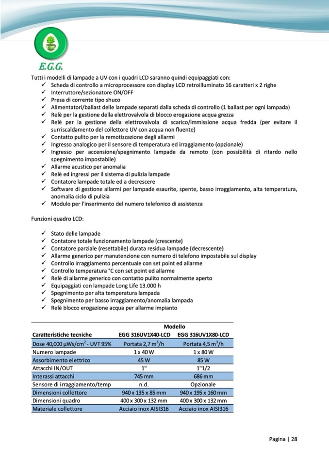 Tutti i modelli di lampade a UV con i quadri LCD saranno quindi equipaggiati con: