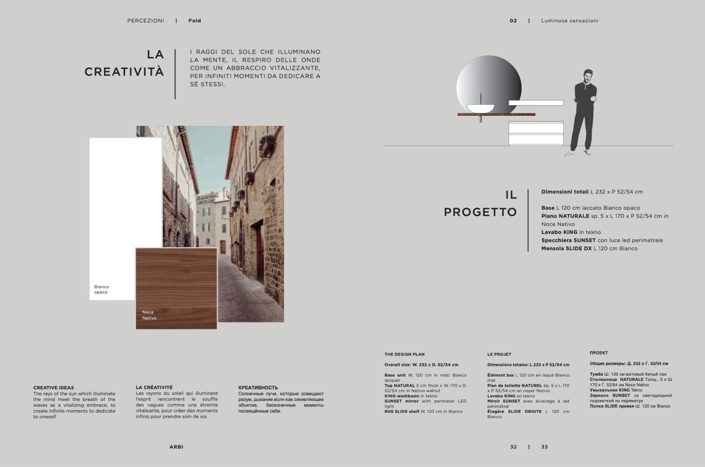 Dimensioni totali L 232 x P 52/54 cm