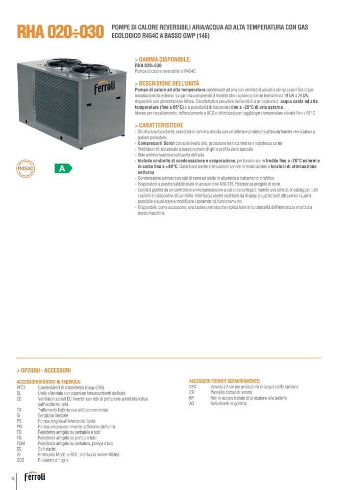 Pompa di calore reversibile in R454C