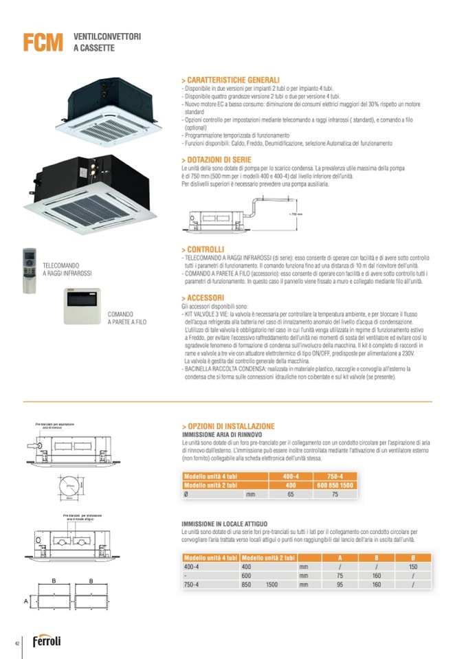 - Disponibile quattro grandezze versione 2 tubi o due per versione 4 tubi.
