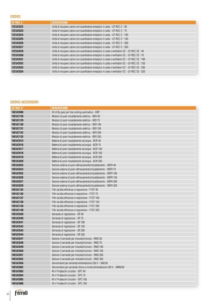 Unità di recupero calore con scambiatore entalpico in carta - UT-REC C