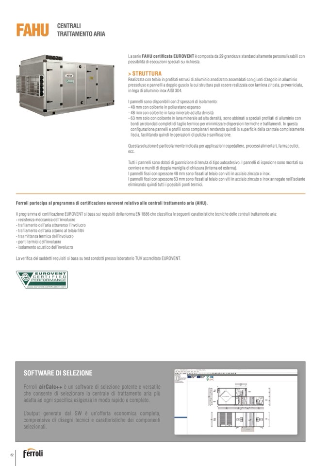 La serie FAHU certificata EUROVENT è composta da 29 grandezze standard altamente personalizzabili con