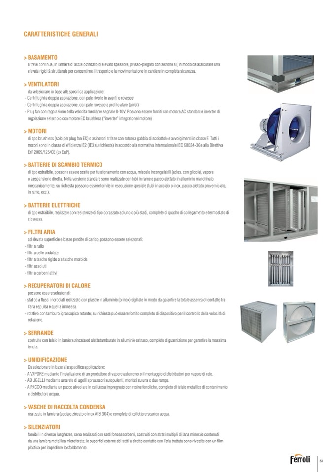 di tipo brushless (solo per plug fan EC) o asincroni trifase con rotore a gabbia di scoiattolo e avvolgimenti in classe F. Tutti i