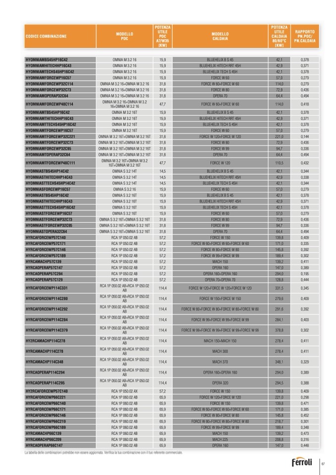 La tabella delle combinazioni potrebbe non essere aggiornata. Verifica la tua combinazione con il tuo referente commerciale.