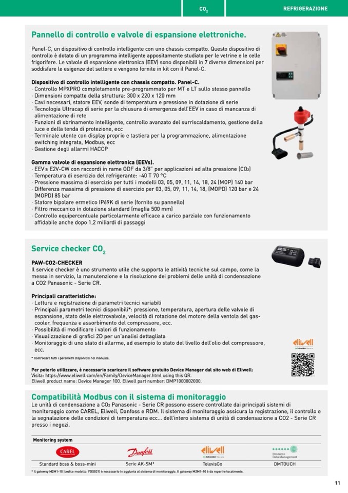 monitoraggio come CAREL, Eliwell, Danfoss e RDM. Il sistema di monitoraggio assicura la registrazione, il controllo e