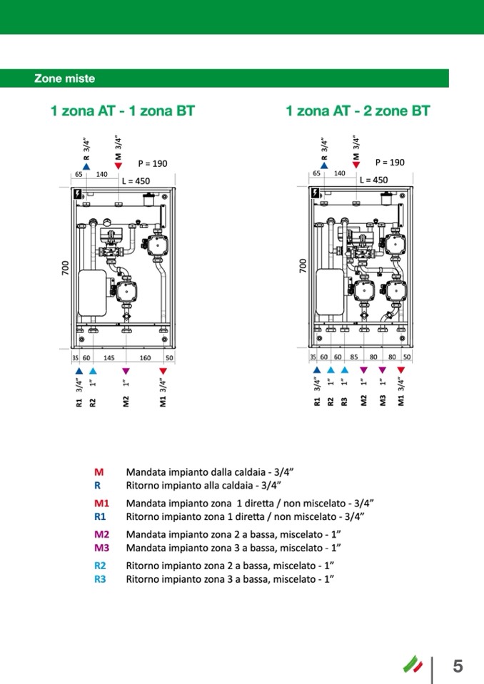 Mandata impianto zona 2 a bassa, miscelato - 1”