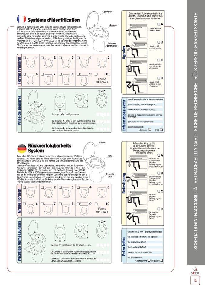 èles différents de sièges de toilettes; SEBA les a groupé par 9 catégories de