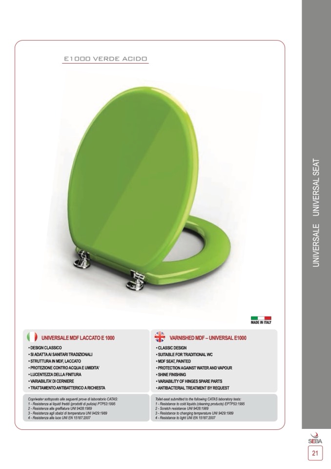 Toilet-seat submitted to the following CATAS laboratory tests: