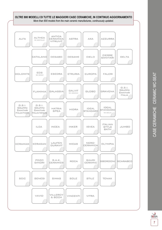 OLTRE 800 MODELLI DI TUTTE LE MAGGIORI CASE CERAMICHE, IN CONTINUO AGGIORNAMENTO
