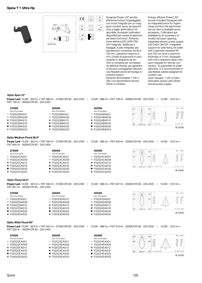 Power Led: 10,5W - 920 lm ≠ FIXT 594 lm - 2700K/CRI 80 - 220-240V
