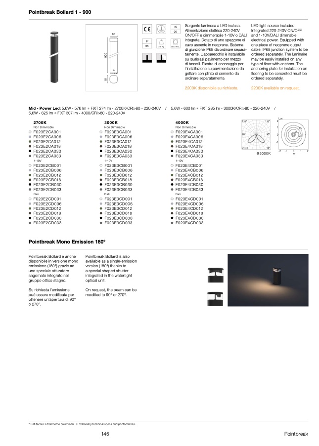 * Dati tecnici e fotometrie preliminari. / Preliminary technical specs and photometries.