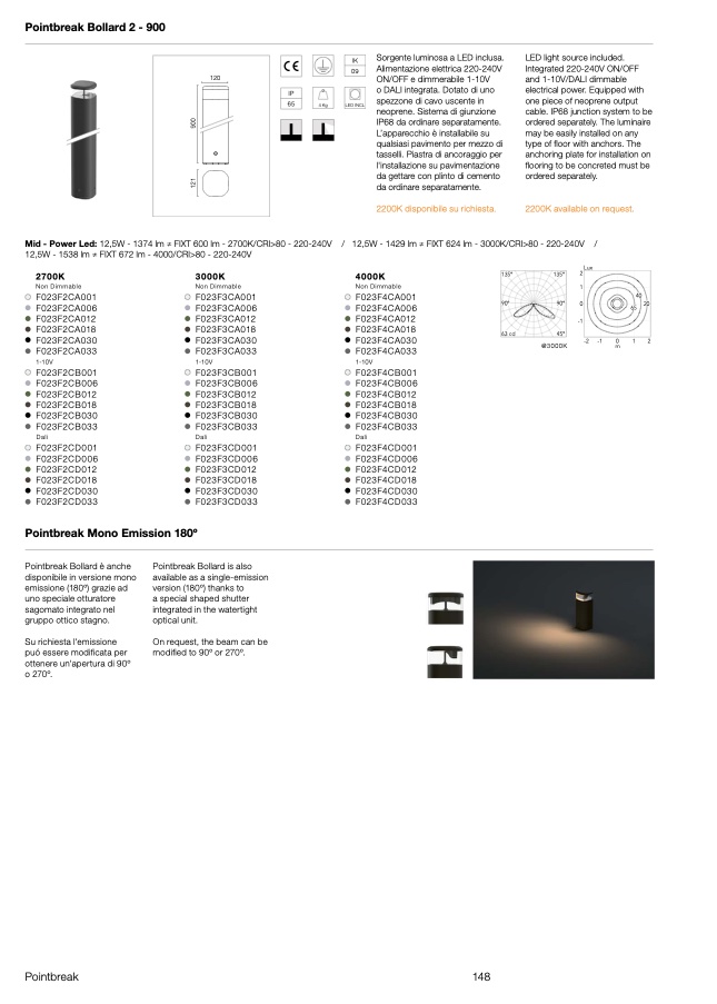 Mid - Power Led: 12,5W - 1374 lm ≠ FIXT 600 lm - 2700K/CRI>80 - 220-240V
