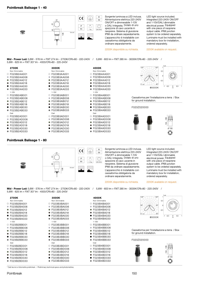 * Dati tecnici e fotometrie preliminari. / Preliminary technical specs and photometries.