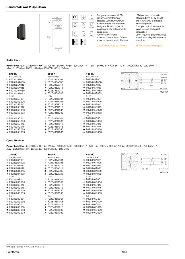 Power Led: 32W - 2x1890 lm ≠ FIXT 2x1108 lm - 2700K/CRI>80 - 220-240V