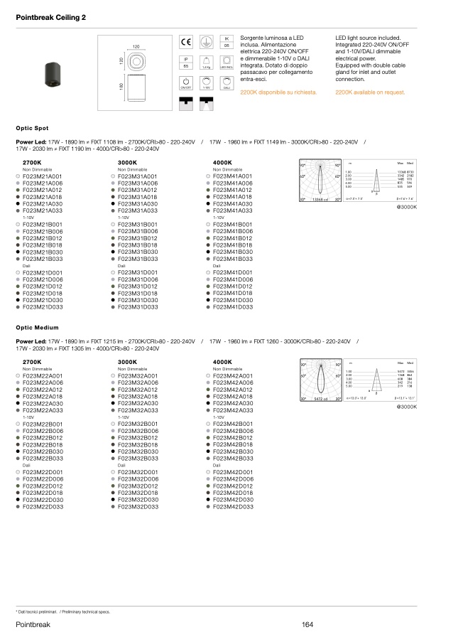 Power Led: 17W - 1890 lm ≠ FIXT 1108 lm - 2700K/CRI>80 - 220-240V