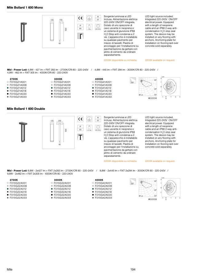 Mid - Power Led: 9,8W - 2x427 lm ≠ FIXT 2x283 lm - 2700K/CRI 80 - 220-240V