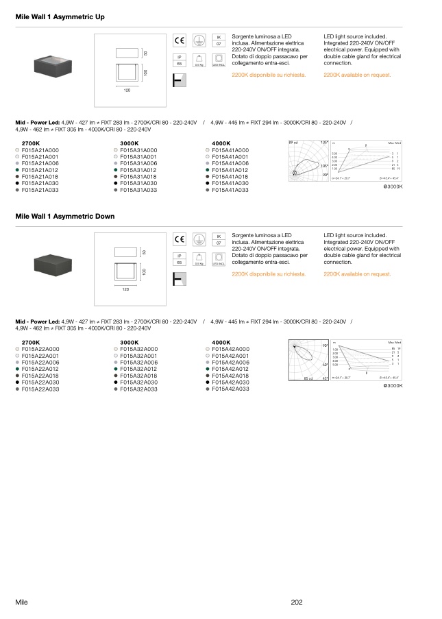 Mid - Power Led: 4,9W - 427 lm ≠ FIXT 283 lm - 2700K/CRI 80 - 220-240V