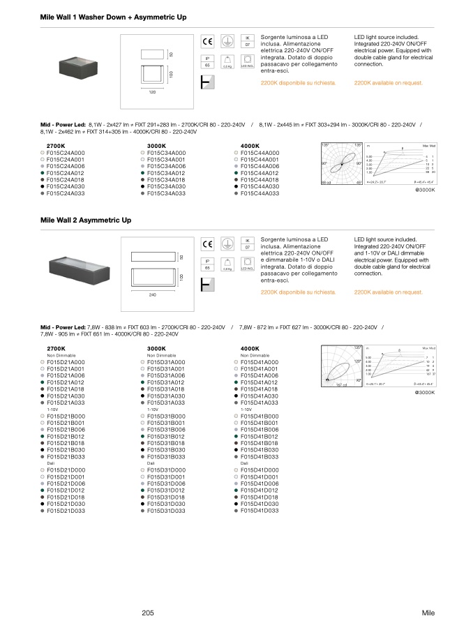 Mid - Power Led: 8,1W - 2x427 lm ≠ FIXT 291+283 lm - 2700K/CRI 80 - 220-240V /