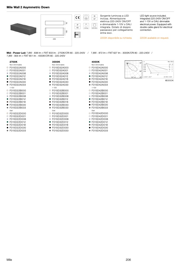 Mid - Power Led: 7,8W - 838 lm ≠ FIXT 603 lm - 2700K/CRI 80 - 220-240V
