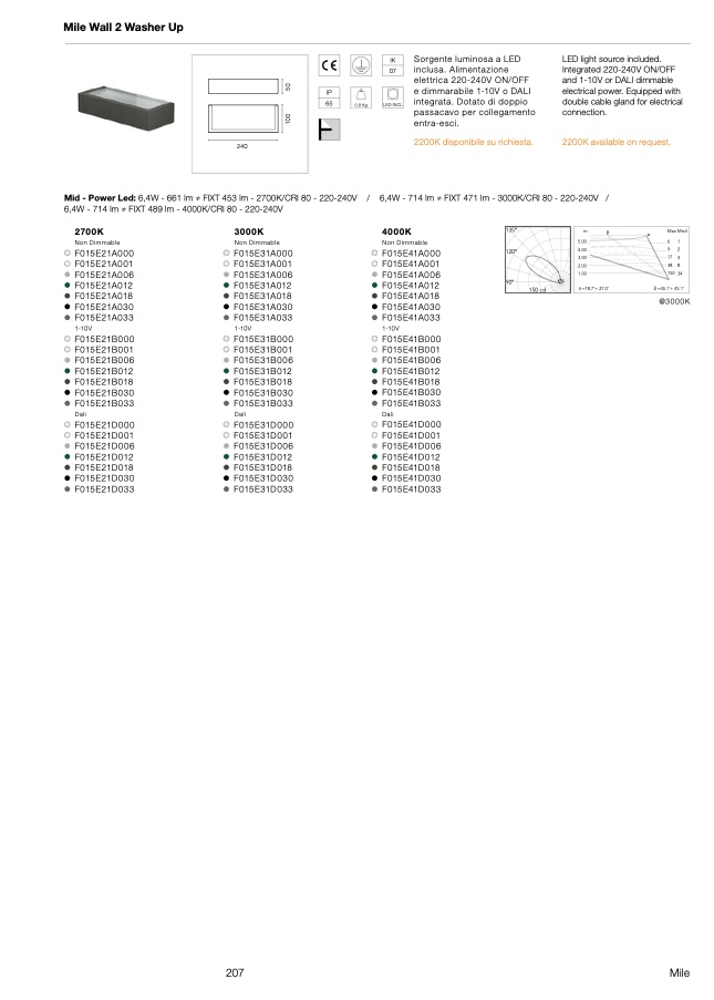 6,4W - 714 lm ≠ FIXT 471 lm - 3000K/CRI 80 - 220-240V