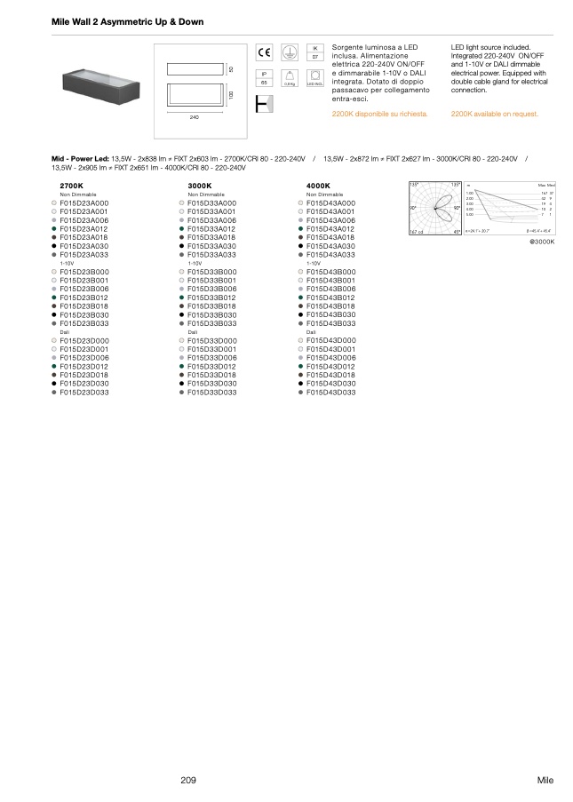 Mid - Power Led: 13,5W - 2x838 lm ≠ FIXT 2x603 lm - 2700K/CRI 80 - 220-240V