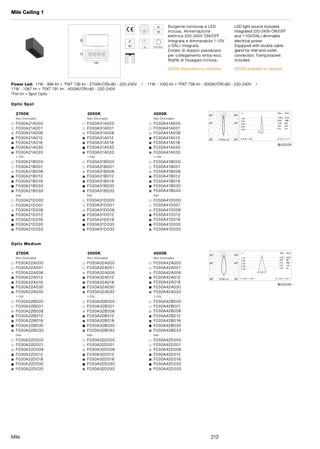 Power Led: 11W - 994 lm ≠ *FIXT 736 lm - 2700K/CRI>80 - 220-240V