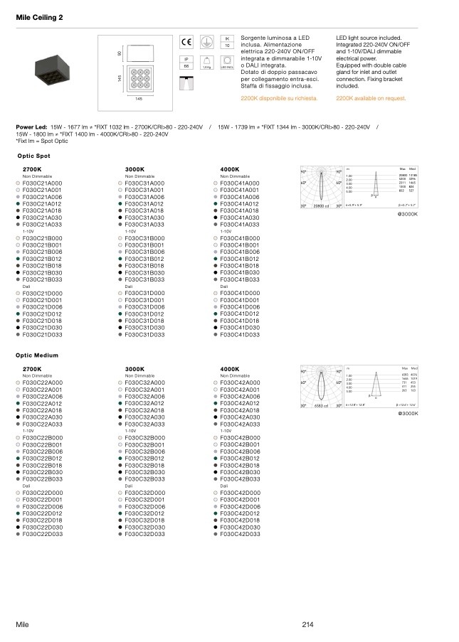 Power Led: 15W - 1677 lm ≠ *FIXT 1032 lm - 2700K/CRI>80 - 220-240V