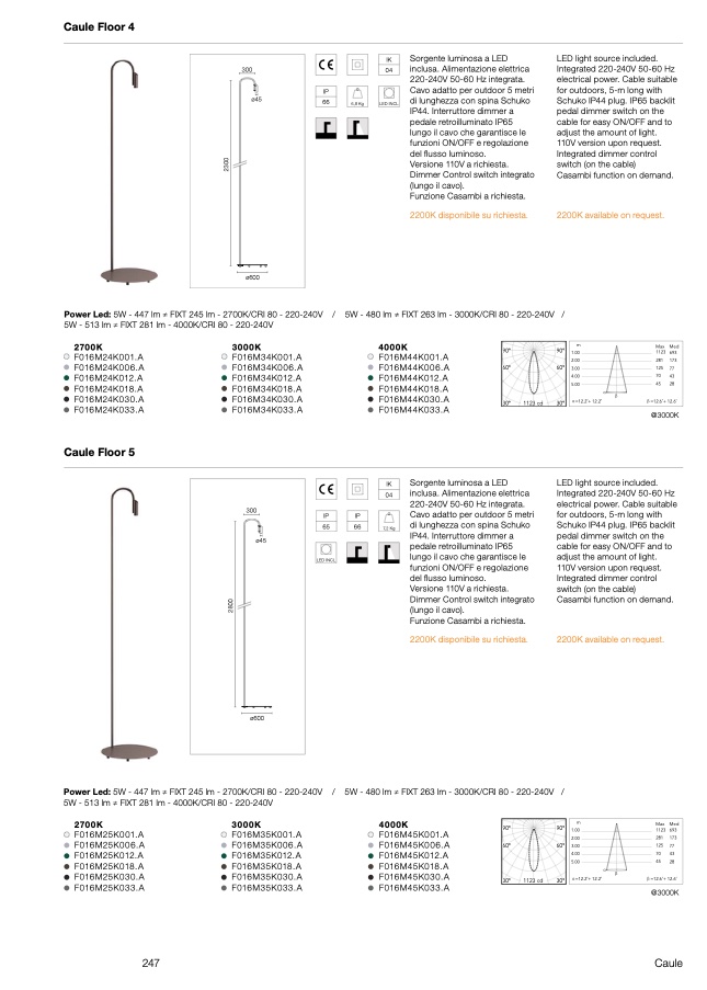 Power Led: 5W - 447 lm ≠ FIXT 245 lm - 2700K/CRI 80 - 220-240V