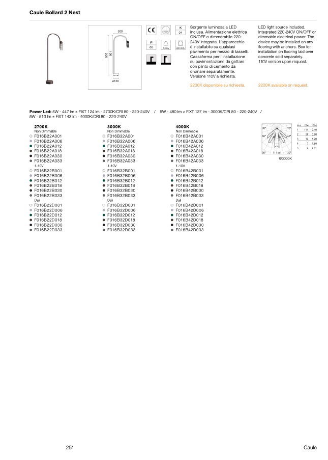 Power Led: 5W - 447 lm ≠ FIXT 124 lm - 2700K/CRI 80 - 220-240V