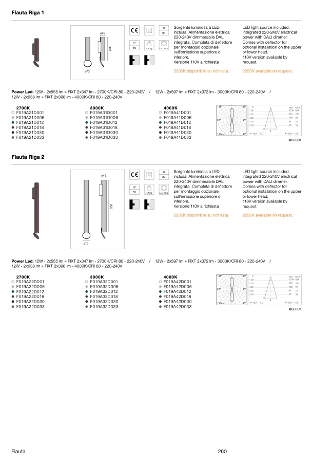 Power Led: 12W - 2x555 lm ≠ FIXT 2x347 lm - 2700K/CRI 80 - 220-240V