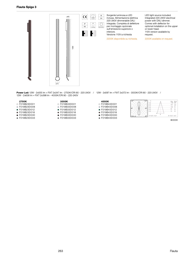 Power Led: 12W - 2x555 lm ≠ FIXT 2x347 lm - 2700K/CRI 80 - 220-240V