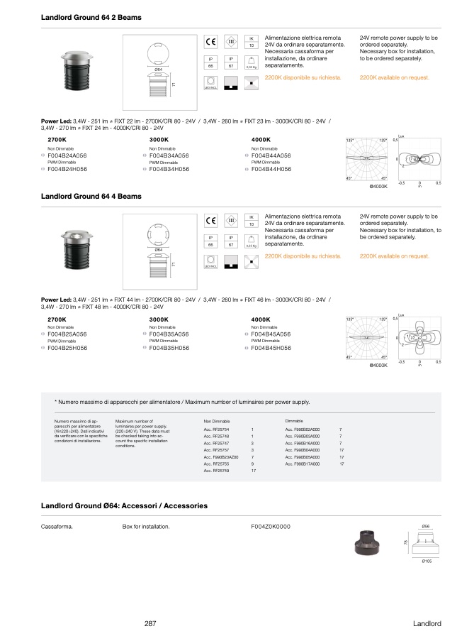 Power Led: 3,4W - 251 lm ≠ FIXT 44 lm - 2700K/CRI 80 - 24V / 3,4W - 260 lm ≠ FIXT 46 lm - 3000K/CRI 80 - 24V /