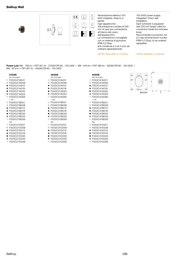 8W - 816 lm ≠ FIXT 580 lm - 3000K/CRI 80 - 100-240V