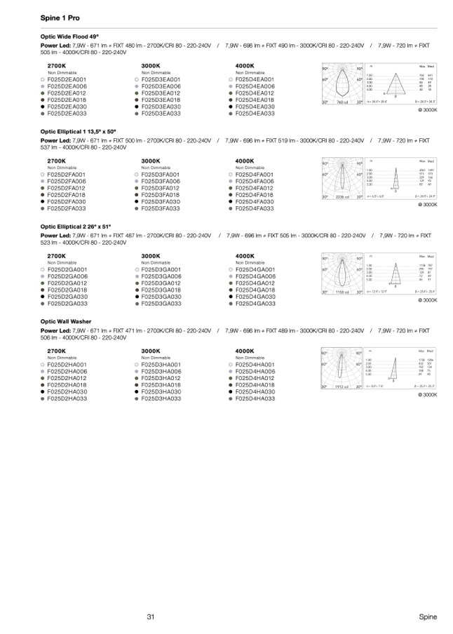 Power Led: 7,9W - 671 lm ≠ FIXT 487 lm - 2700K/CRI 80 - 220-240V