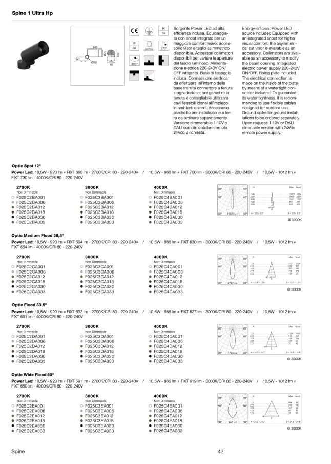 Power Led: 10,5W - 920 lm ≠ FIXT 594 lm - 2700K/CRI 80 - 220-240V