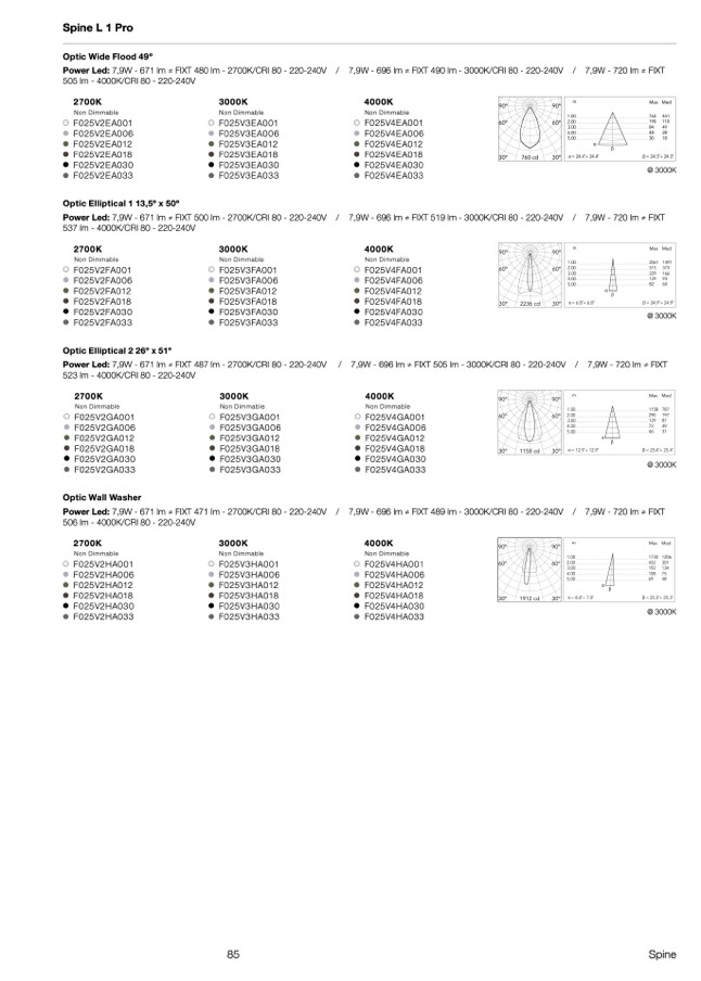 Power Led: 7,9W - 671 lm ≠ FIXT 487 lm - 2700K/CRI 80 - 220-240V