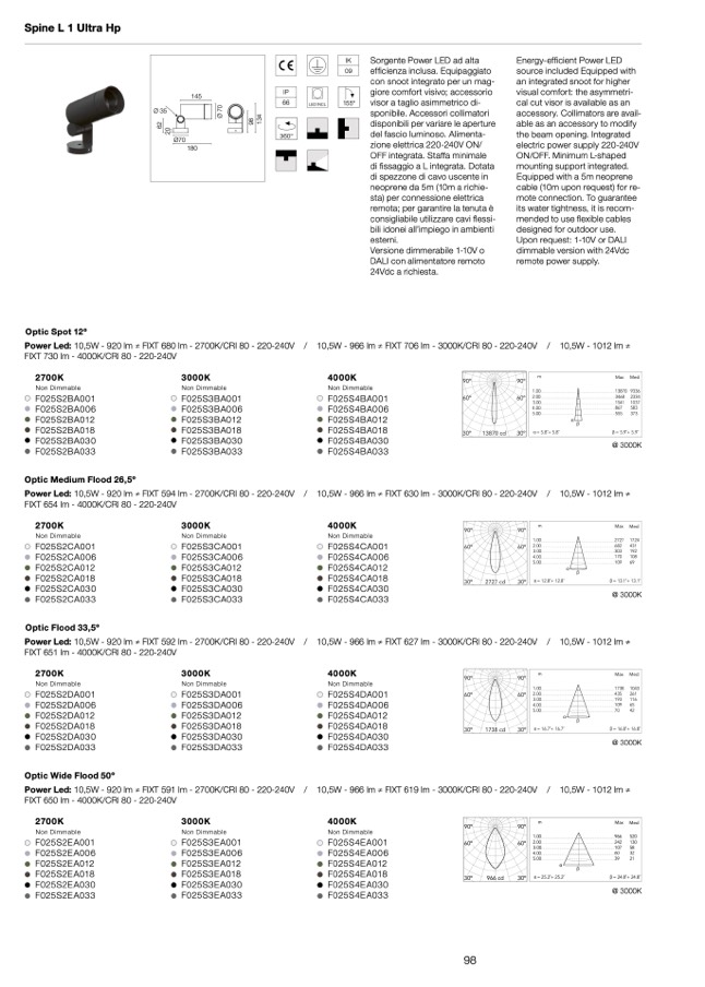 Power Led: 10,5W - 920 lm ≠ FIXT 594 lm - 2700K/CRI 80 - 220-240V