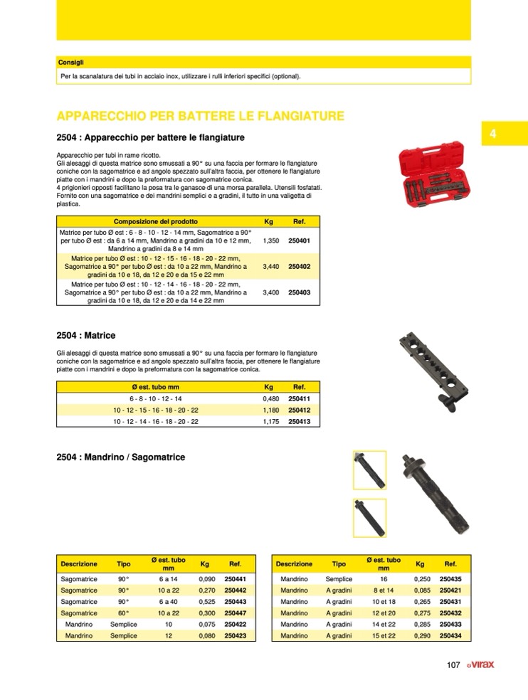 Matrice per tubo Ø est : 10 - 12 - 15 - 16 - 18 - 20 - 22 mm,
