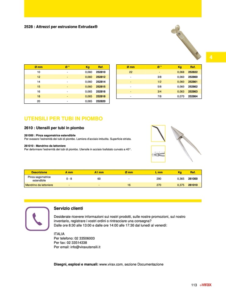 Disegni, esplosi e manuali: www.virax.com, sezione Documentazione
