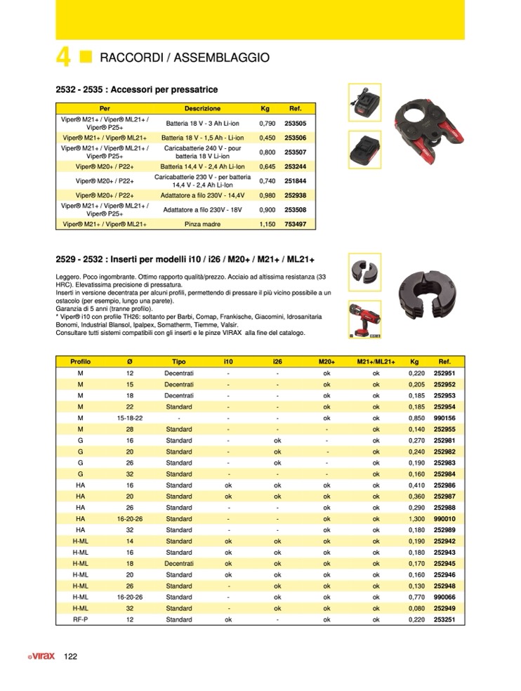 Consultare tutti sistemi compatibili con gli inserti e le pinze VIRAX alla fine del catalogo.
