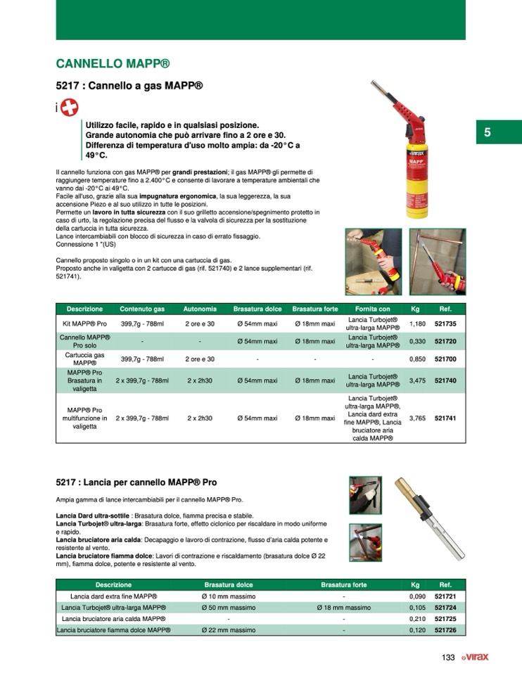 Proposto anche in valigetta con 2 cartucce di gas (rif. 521740) e 2 lance supplementari (rif.