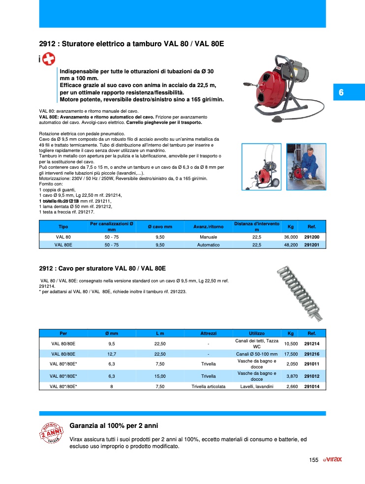 * per adattarsi al VAL 80 / VAL 80E, richiede inoltre il tamburo rif. 291223.