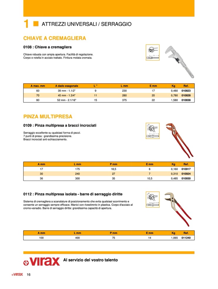consente un serraggio sempre efficace. Manici con rivestimnto in plastica. Corpo d'acciaio al