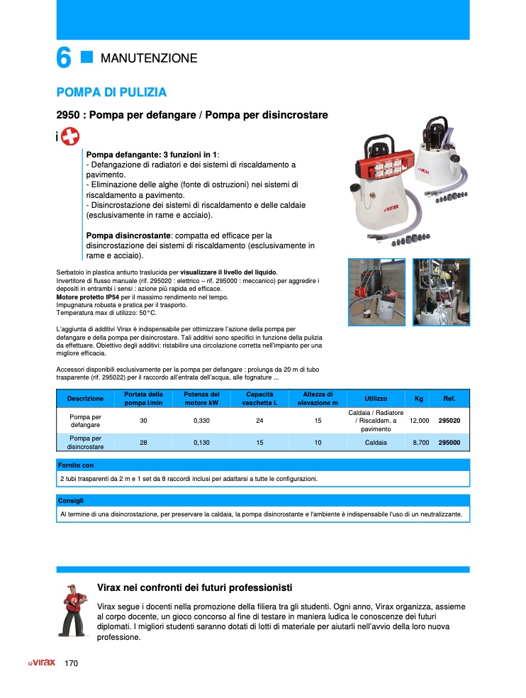 L’aggiunta di additivi Virax è indispensabile per ottimizzare l’azione della pompa per