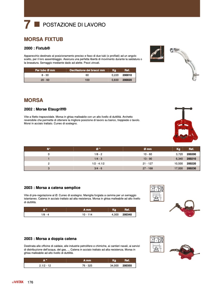 di distribuzione dell’acqua, del gas, ... Catena in acciaio trattato ad alta resistenza. Morsa in