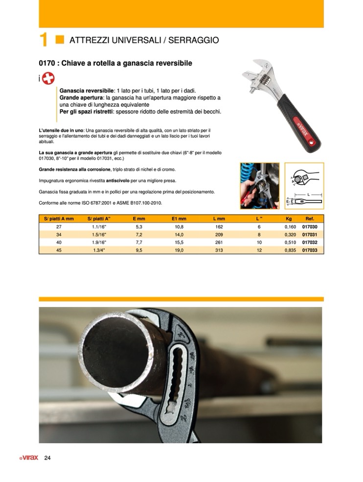 La sua ganascia a grande apertura gli permette di sostituire due chiavi (6“-8“ per il modello