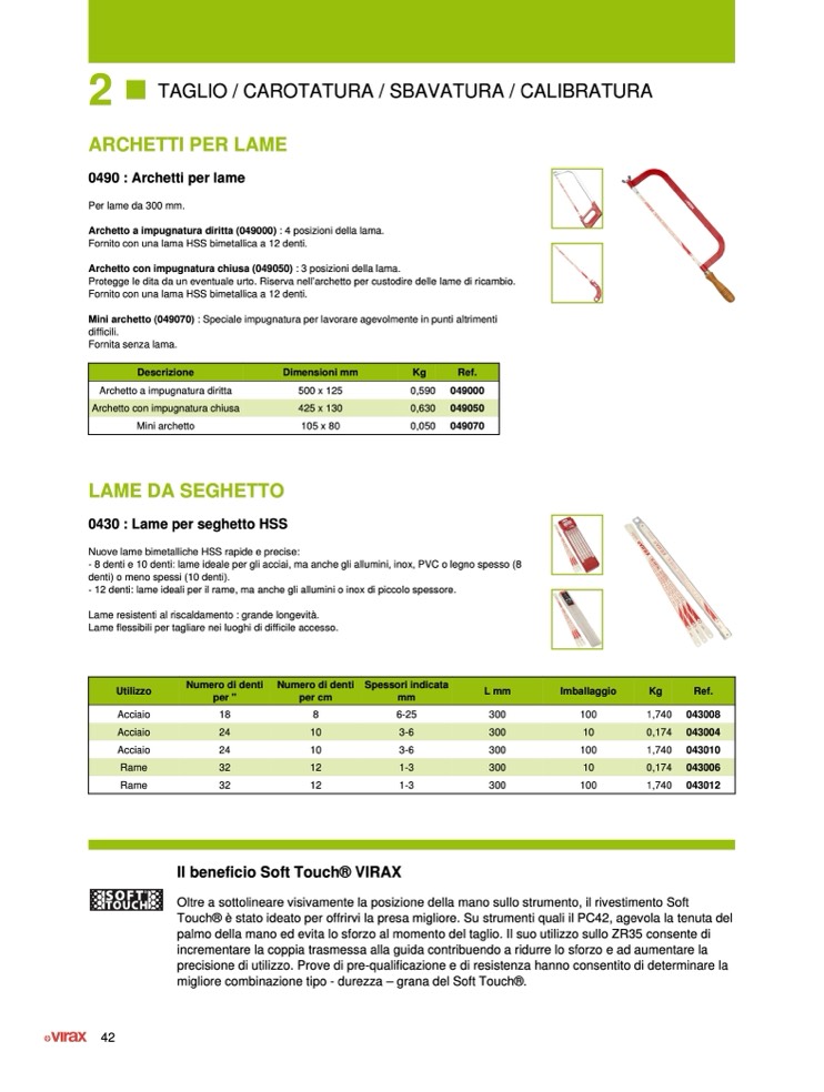 Protegge le dita da un eventuale urto. Riserva nell’archetto per custodire delle lame di ricambio.