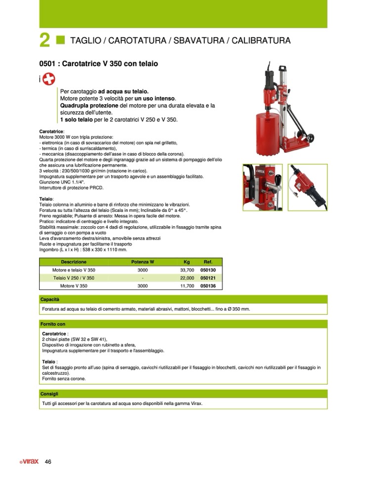 1 solo telaio per le 2 carotatrici V 250 e V 350.