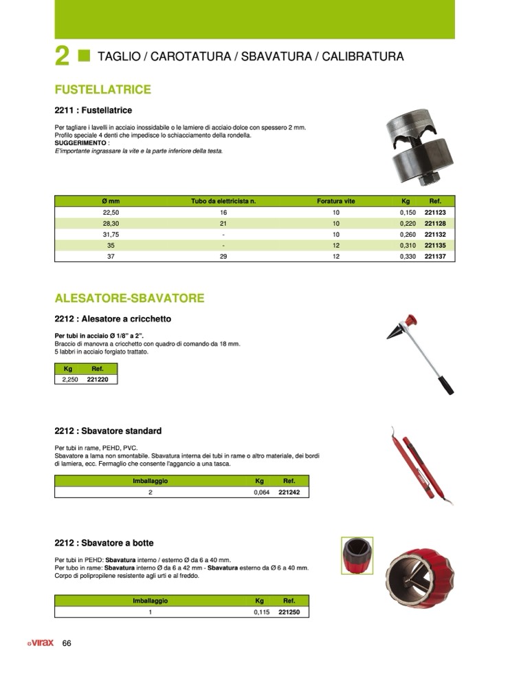 Per tubo in rame: Sbavatura interno Ø da 6 a 42 mm - Sbavatura esterno da Ø 6 a 40 mm.