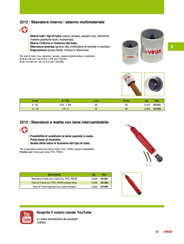 Per la sbavatura interna dei tubi di rame, PVC, PEHD, acciaio inossidabile.